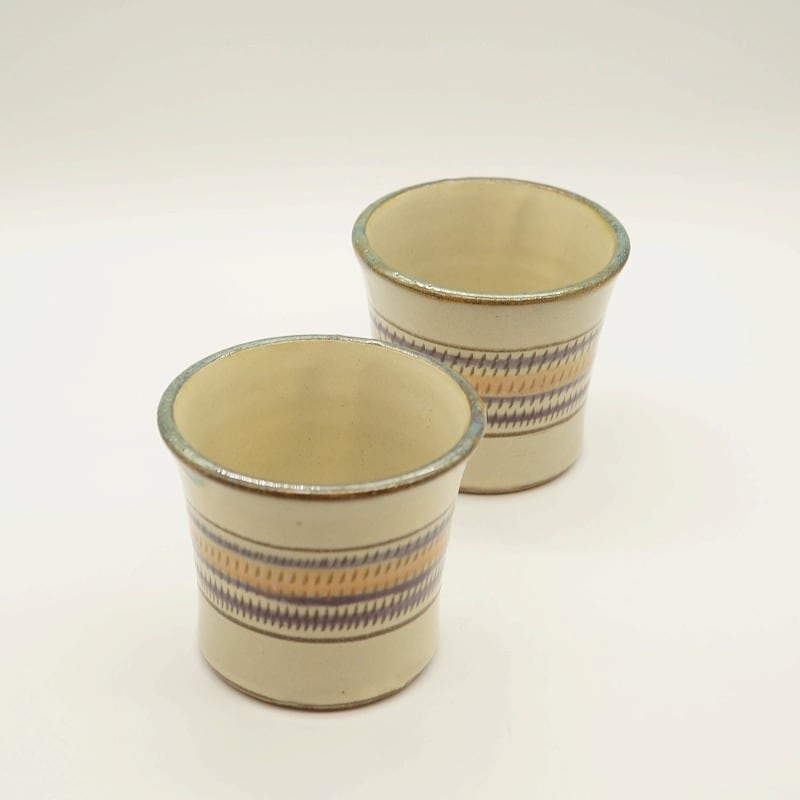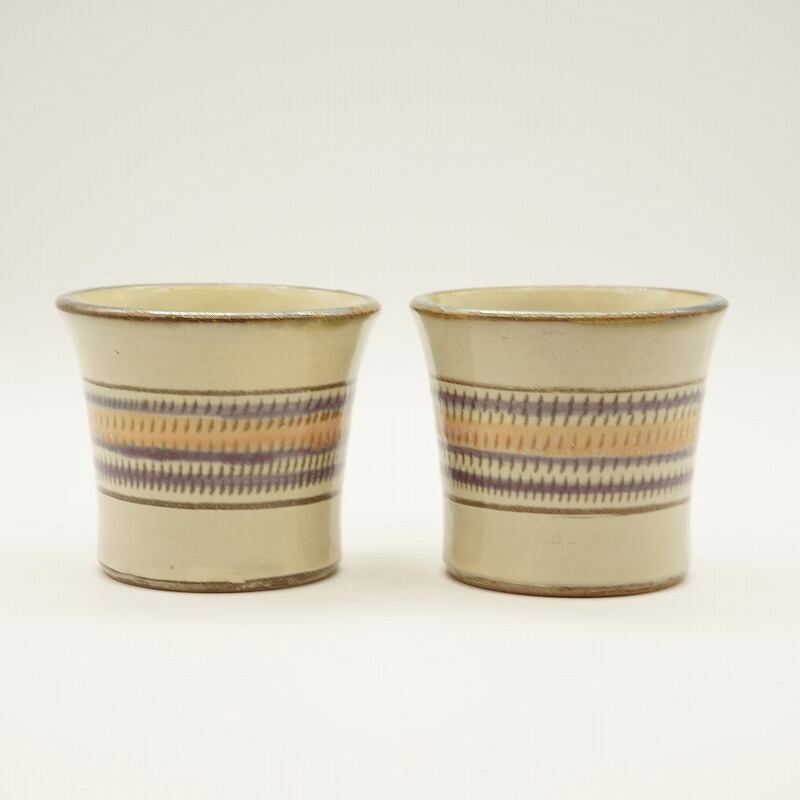 とびカンナにピンクと紫のラインが柔らかな印象のフリーカップ。