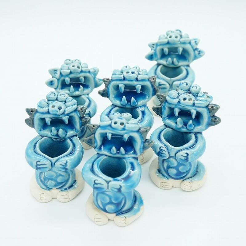 南城市玉城に工房を構える【玉城焼】の三線シーサーとようじ立て のセット