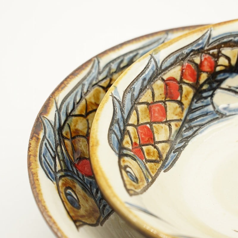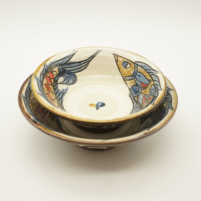 6寸深皿 魚紋【金城陶器秀陶房】