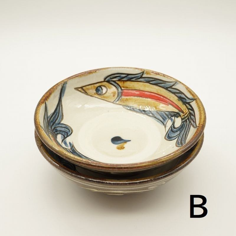 南城市玉城に工房を構える金城陶器 秀陶房の魚紋セット