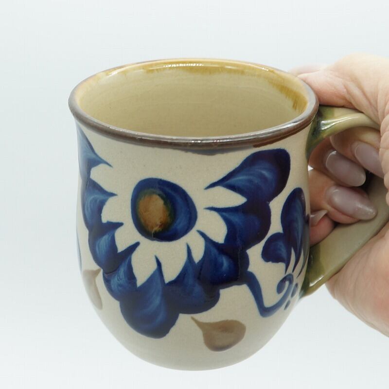コバルトが鮮やかなマグカップ 唐草 【ヤチムン大城工房】