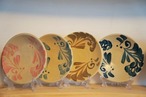 カラフル唐草(染め)シリーズ 5寸皿(約15センチ)グレー【やちむん工房與那嶺】