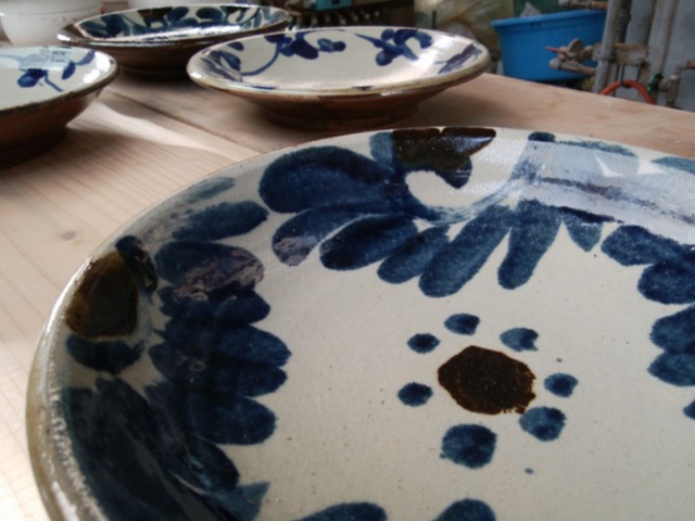 師匠から受け継いだ唐草文様を大皿に大胆に描きました。