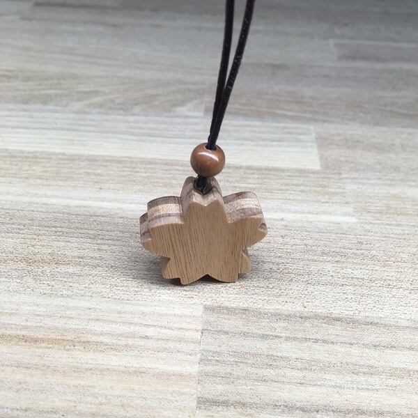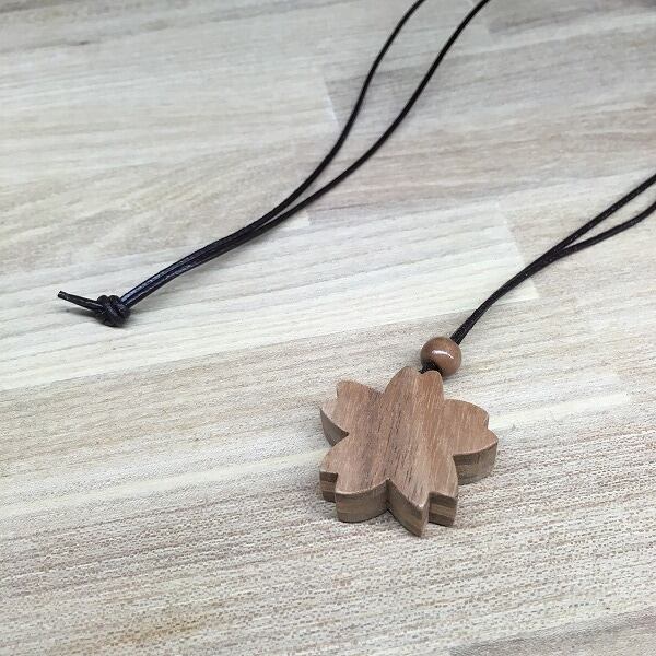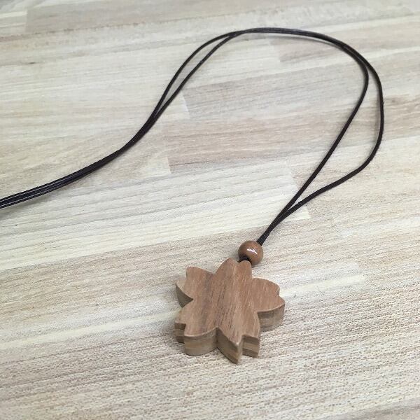 さわやかな香りと防虫剤に使われることで有名な、沖縄原産のクスノキで作った、さくらのネックレス。