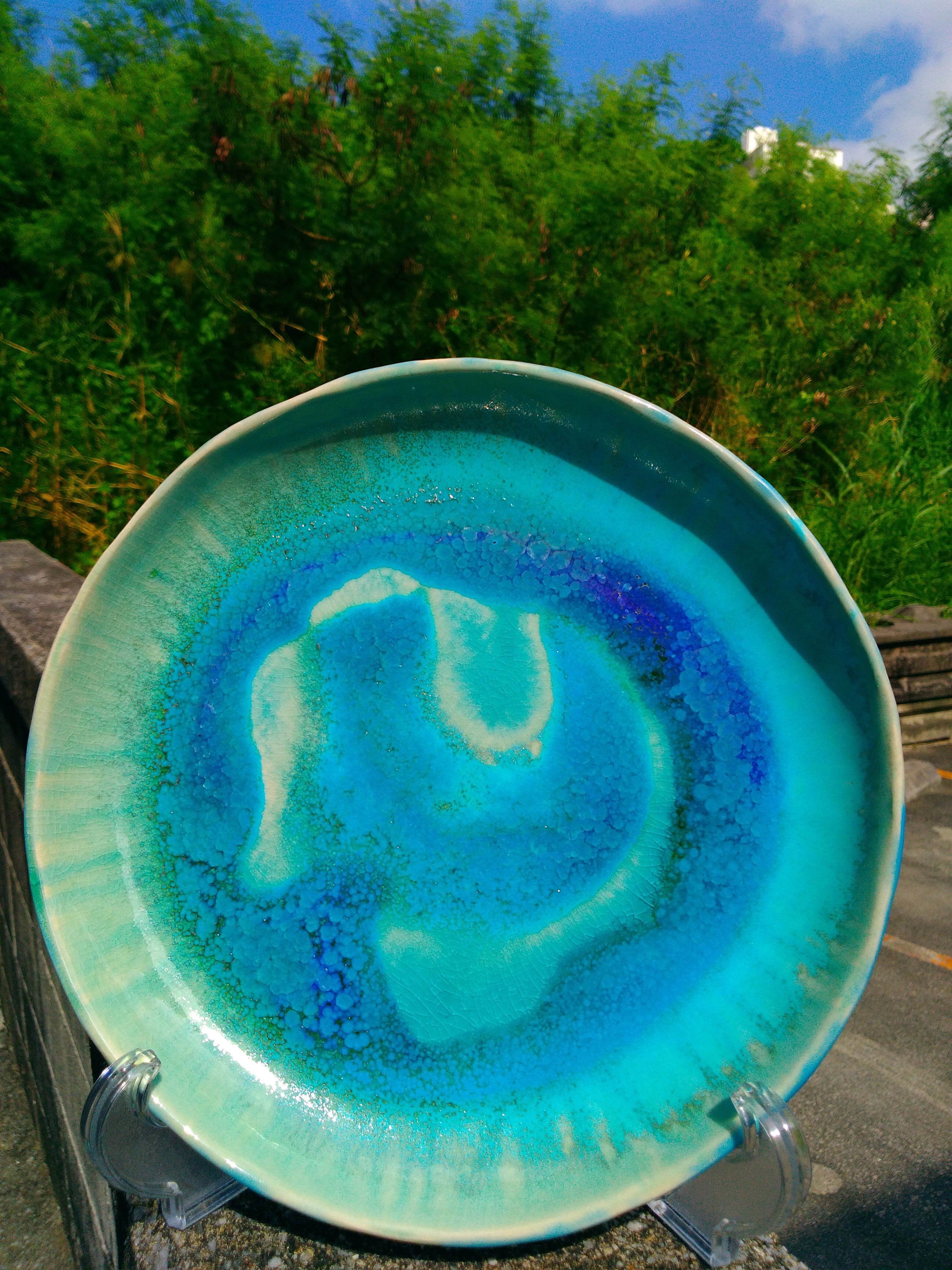 南城市玉城に工房を構える【玉城焼】コマカアイランドブルーの8寸皿