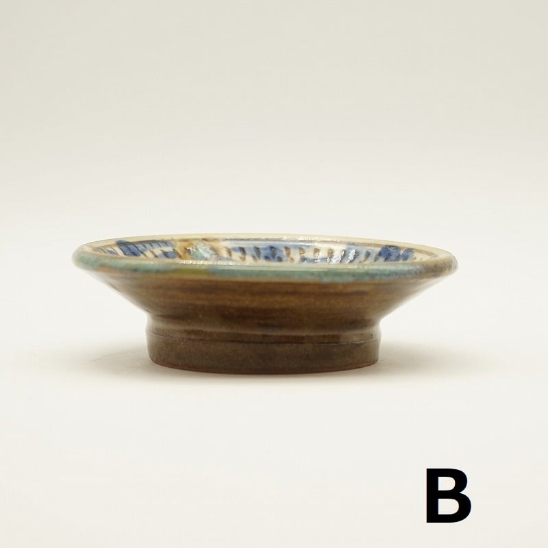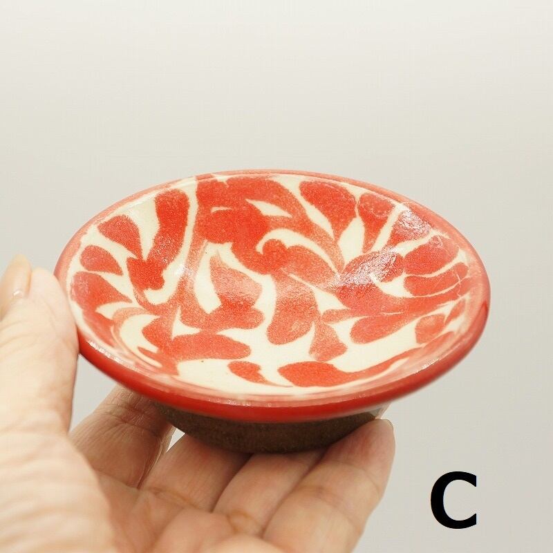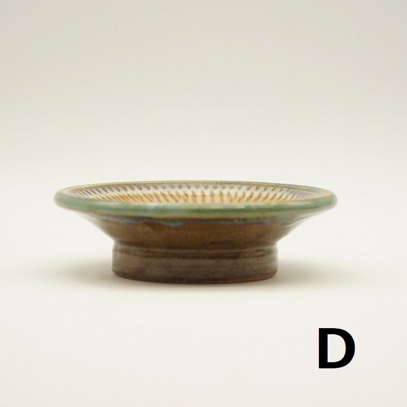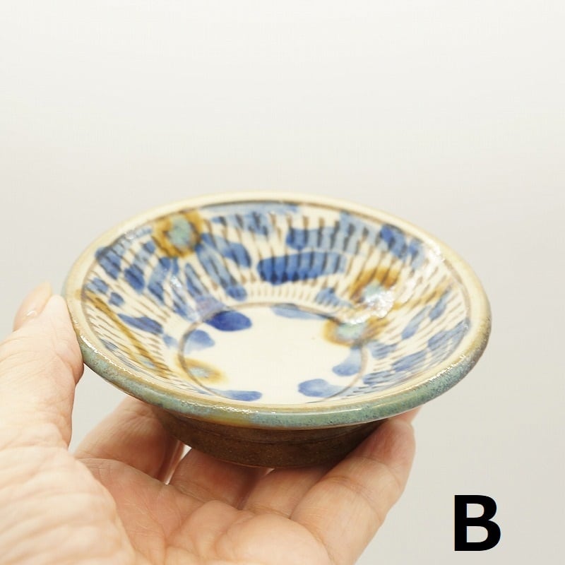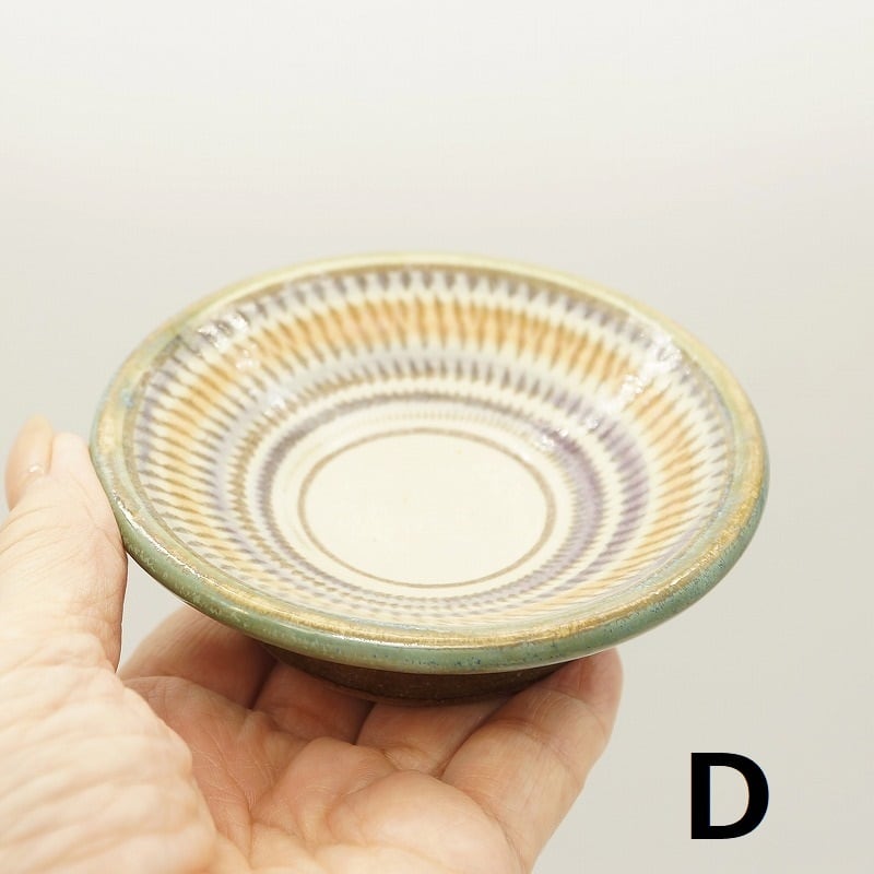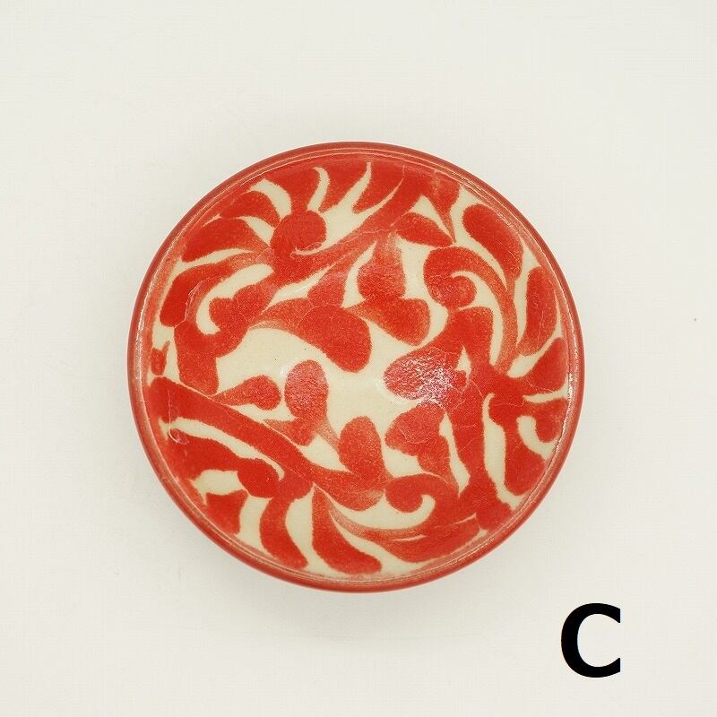 とびカンナに唐草模様など、やちむんの伝統的な模様や技法で仕上げた、何枚あっても嬉使い勝手の良いの3寸皿。