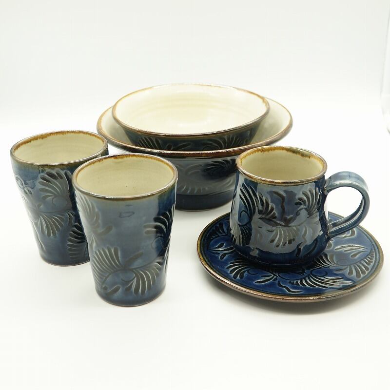 藍彩線彫りシリーズのカップとのセット使いもおすすめ