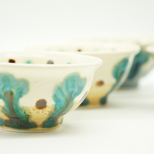 色合いもフクギの染付文様もとても愛らしく、その濃淡やにじみは手仕事ならではの風合い。