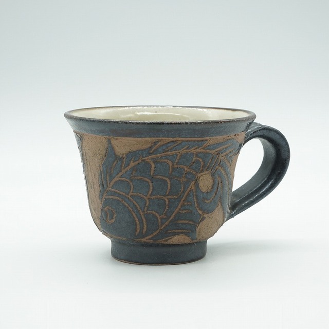 魚紋コーヒーカップ&ソーサー 黒釉かき落とし【金城陶器秀陶房】