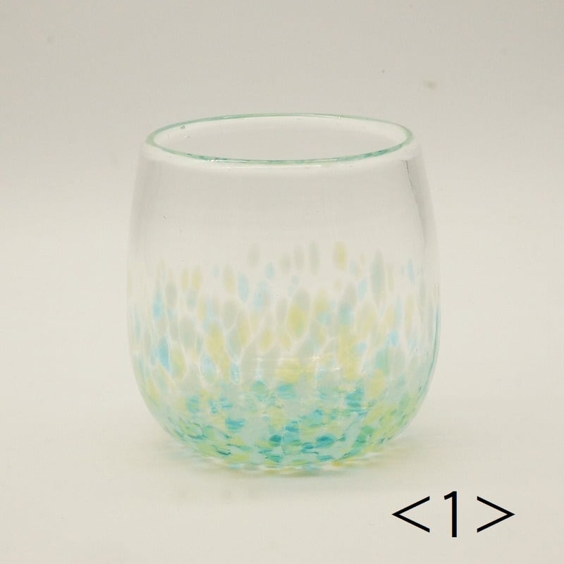 読谷村に工房を構える【琉球ガラス工房 雫】のドット柄のたるグラス
