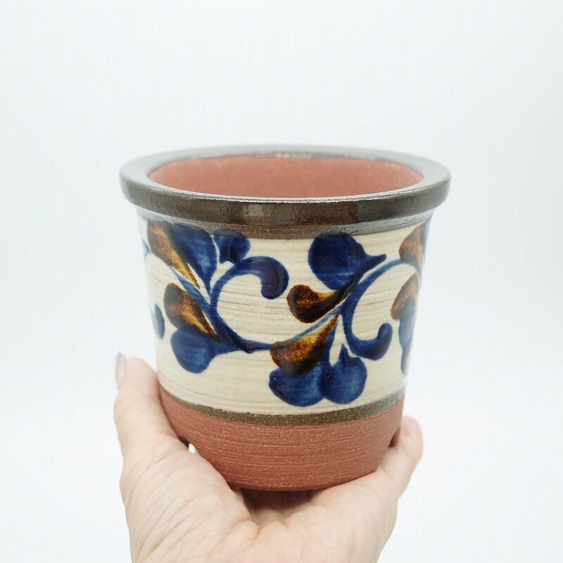 【陶器屋須藤】唐草模様の植木鉢(大)